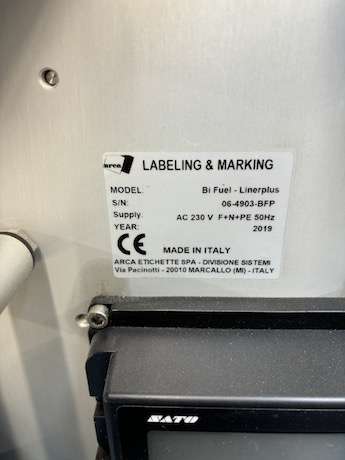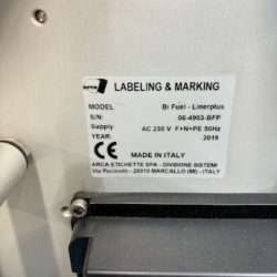 Used Area linerplus Industrial print apply labeller which is currently mounted on a height adjustable frame. The linerplus model is able to apply one or two labels on adjacent sides of the product which can be stationary or in motion. It has the capability to apply to curved or flat surfaces as well as around corners.